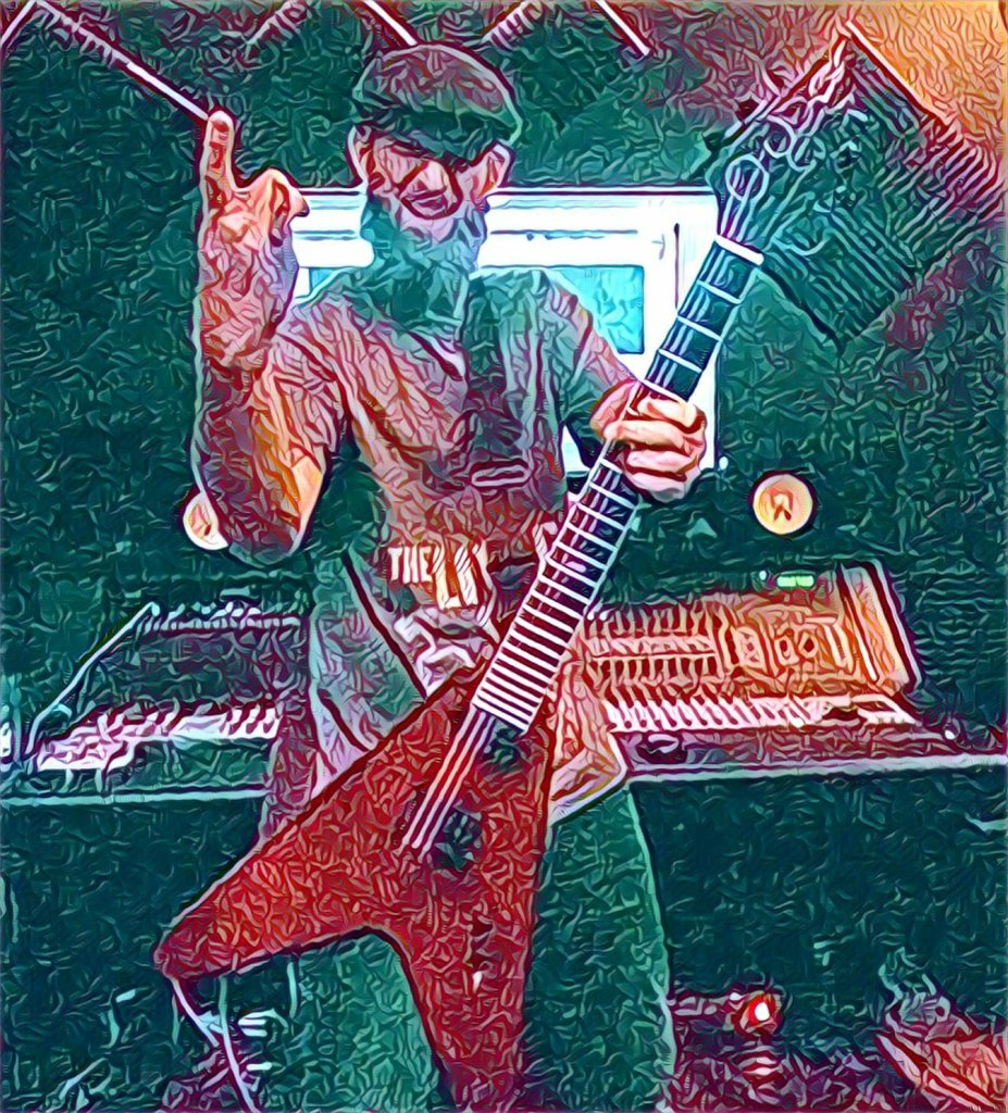 With his Stealth Black V66 V-SERIES V Guitar